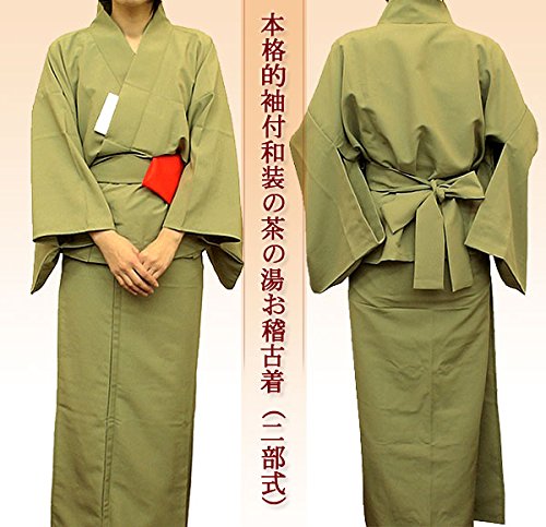 Amazon:茶道具・おけいこ着/本格的袖付和装の茶の湯お稽古着 うぐいす色
